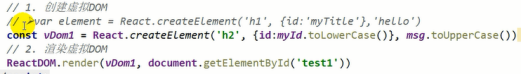 const vDOM1 = React.createElement('h2', {id: myId}, msg.toUpperCase())