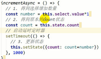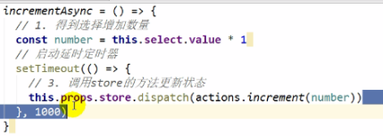 过了一秒增加,函数参数是从容器组件传过来的incrementAsync