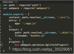 Entry是webpack的入口从哪开始处理js,app.js在context定义的src目录下。Webpack打包安装的输出的目录,path.resolve() output webpack会自动创建目录