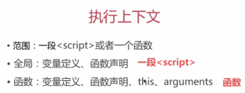 一段<script>标签都会生成执行上下文, 函数arguments,函数执行前先把变量定义函数声明拿出来,this和所有参数集合都提前拿出来