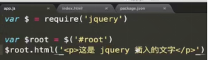 知道id为root的div,require是字符串,通过package.json对接出来