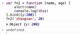 Bind函数this规定为y:200不想让函数的this是window,bind不能用函数声明必须用函数表达式var fn=function(){}