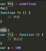 函数表达式var fn=function(){ }提前执行会报错 与函数声明function fn(){}会被前置在前面执行fn()不会报错 ,函数表达式不能把函数提前,var前置执行会undefined