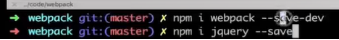 安装webpack,--save-dev 包webpack保存起来只用于开发环境,上线集中运行不需要webpack,jQuery库不仅仅在开发环境与运行浏览器都需要使用不能有-dev