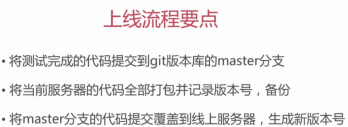Linux命令行服务器,上线流程将完成代码提交到git版本库的master分支,保证master分支是测试完成之后的上线,当前服务器代码打包记录版本号备份,master版本代码覆盖线上服务器生成新版本号,回滚将服务器代码打包并记录版本号备份,上一个版本号解压覆盖线上服务器生成新版本号,