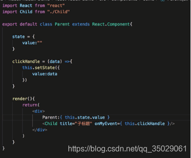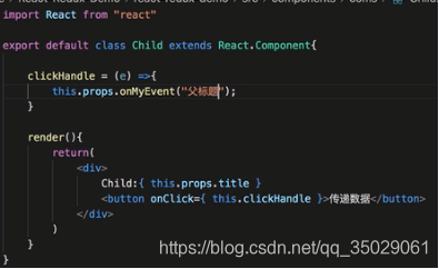 <Child title="子标题" onMyEvent={ this.clickHandle }/>