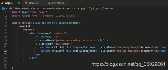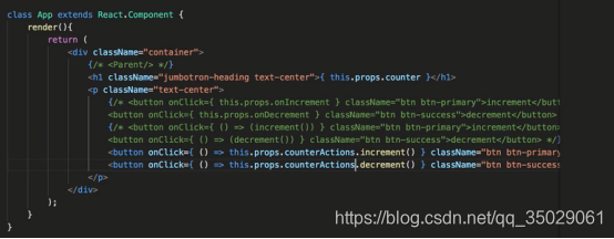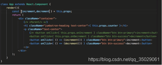 <button onClick={ this.props.onDecrement } className="btn btn-success">decrement</button> */}