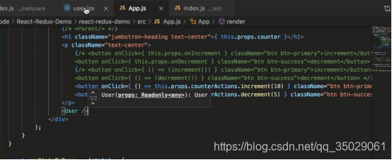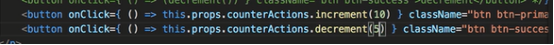 <button onClick={ () => this.props.counterActions.decrement(5) } className="btn btn-success">decrement</button>