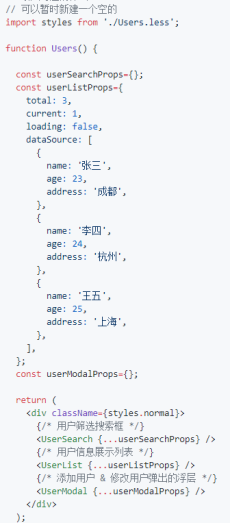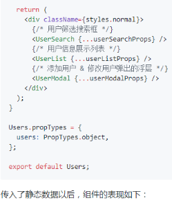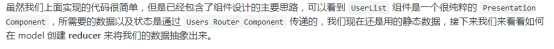 在订阅了数据以后,就可以通过 props 访问到 model 的数据了,而 UserList 展示组件的数据,也是 Container Component 通过 props 传递的过来的。
