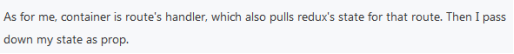 对于我来说,容器是路由的处理程序,它还为该路由获取redux的状态