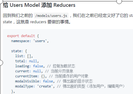 给 Users Model 添加 Reducers,根据新的数据来修改本身的 state,这就是 reducers 要做的事情。