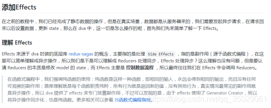 我们是不是可以理解成 Reducers 处理同步,Effects 处理异步?这么理解也没有问题,但是要认清 Reducers 的本质是修改 model 的 state,而 Effects 主要是 控制数据流程 ,所以最终往往我们在 Effects 中会调用 Reducers。