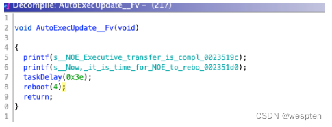 更新任务就是打印了提示语句,然后对任务进行推迟,然后重启。可以看到在整个流程中并没有进行严格的用户检测和固件检测,我们仅仅需要对固件进行简单的处理,然后构造流量包,即可完成对于设备固件的替换,进而导致设备瘫痪或者刷入有漏洞的固件版本进行进一步攻击。