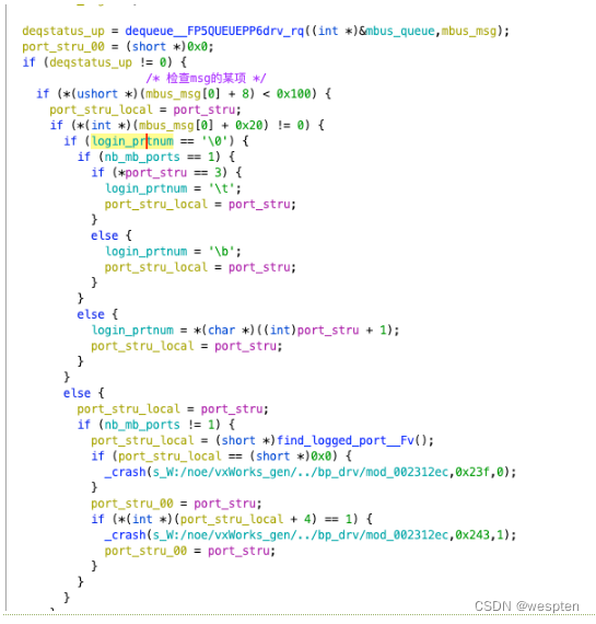 往后是我们的port结构体的[6]设置为msg[0],然后用read_mbus_svars函数,访问内存,取出内容赋给msg。其余的操作较为繁琐,大致就是将消息给存到了别处,并没有做进一步处理。然后再通过port_stry_00作为参数,对该函数进行递归调用。