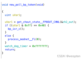 首先是获取信道2out的状态,和0xff进行”与“操作,看结果是不是0x40,这是在硬件编程中很常用的手段,0x40即对应0000 0100,同于”与“检查state的第三位是否为1,如果是则进入bp_isc_c,不是则调用process_modnet,我们先来看看不是的情况。