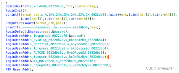 可以看到首先打开了/FLASH0/ftp/ftp.ini文件,如果失败了,那就添加一个默认的账户(也就是说如果用户没有设置ftp.ini时,我们可以通过该后门用户直接登录)。然后去依次读取ini文件中的用户名、密码,最后进行添加和核对,如果过程中出现了错误就打印相关错误,但是没有设置检查,及时出错也不会导致系统出现问题。