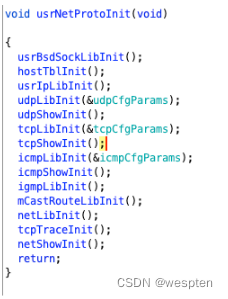 可以又调用了一堆init函数,不要心急,我们一个一个来看。首先是我们说过关于协议初始化的usrNetProtoInit函数。