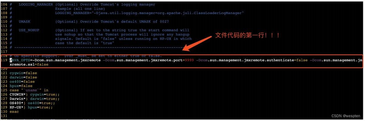 先进入Tomcat的bin目录下面,然后打开catalina.sh文件,会发现这个文件前面都是一堆注释,注意!!!就在这一堆注释后面加上一行代码(其实也可以说,就在这个文件的第一行加上一行代码):