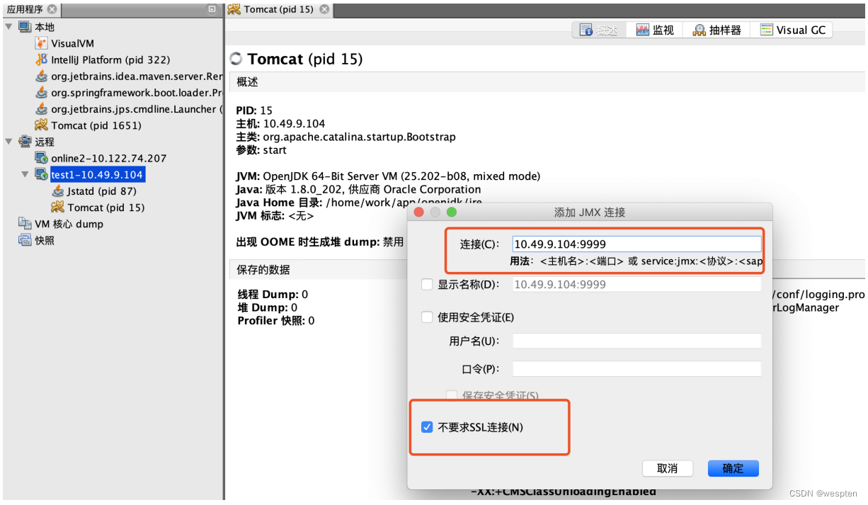 前面的示例都是在本地测试,这里我主要通过VisualVM图像化工具,看如何连接上线上机器。