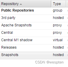1. hosted,宿主仓库,部署自己的 jar 到这个类型的仓库,包括 releases 和 snapshot 两部 分,Releases 公司内部发布版本仓库、 Snapshots 公司内部测试版本仓库。