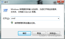 2. 在打开里面输入:cmd;