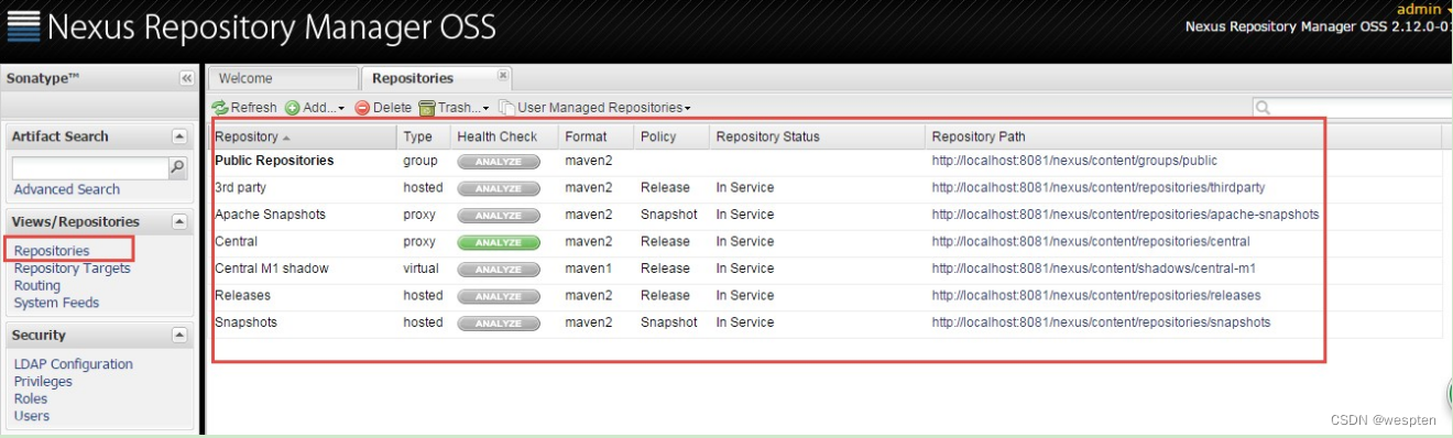 查看 nexus 的仓库: