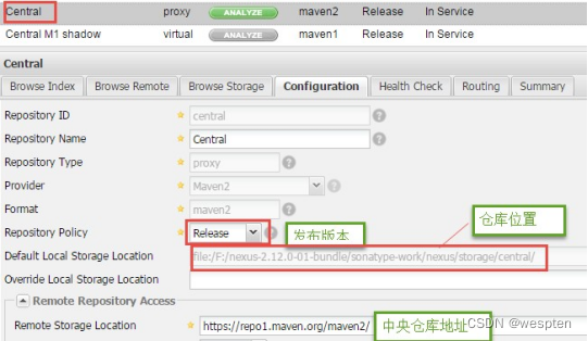 2. proxy,代理仓库,用于代理远程的公共仓库,如 maven 中央仓库,用户连接私服,私 服自动去中央仓库下载 jar 包或者插件。