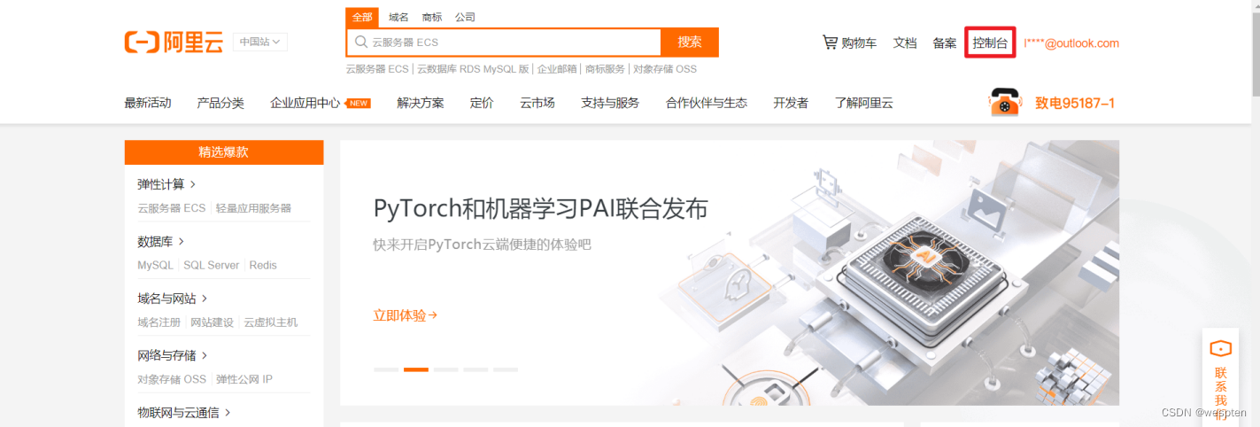 阿里云网址为:阿里云-为了无法计算的价值,注册账号并登录。