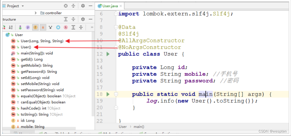 | @AllArgsConstructor | 注解在类上 | 为类提供一个全参的构造方法 |