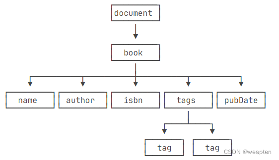 注意到最顶层的document代表XML文档,它是真正的“根”,而<book>虽然是根元素,但它是document的一个子节点。