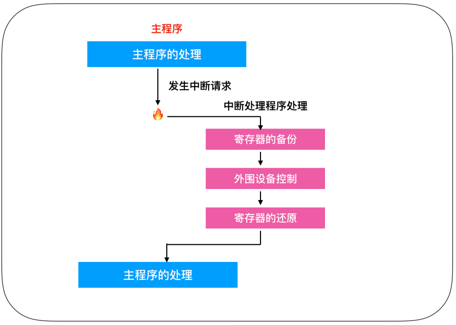 假如 CPU寄存器数值还没有还原的话,就会影响到主程序的运行,甚至还有可能会使程序意外停止或发生运行时异常。这是因为主程序在运行过程中,会用到CPU寄存器进行处理,这时候如果突然插入其他程序的运行结果,此时 CPU必然会受到影响。所以,在处理完中断请求后,各个寄存器的值必须要还原。只要寄存器的值保持不变,主程序就可以像没有发生过任何事情一样继续处理。