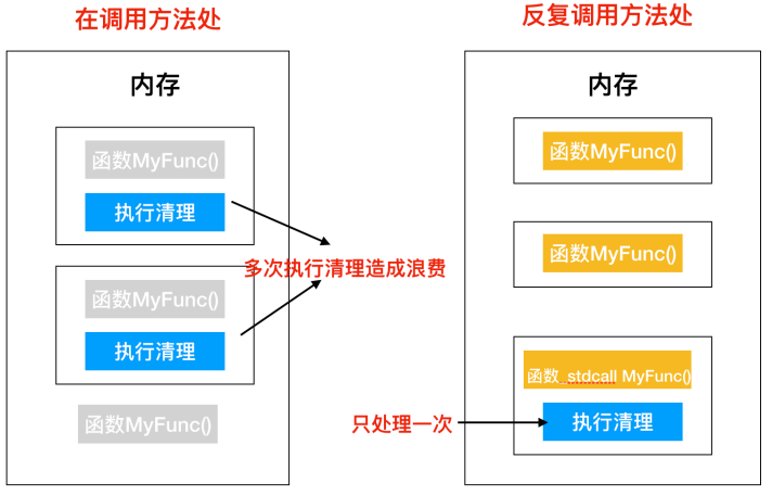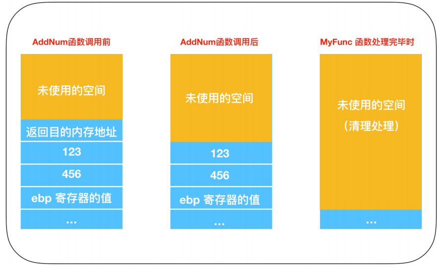 MyFun 函数在被调用之前,0154地址保存在栈中,MyFun函数处理完成后,会把0154的地址保存在程序计数器中。