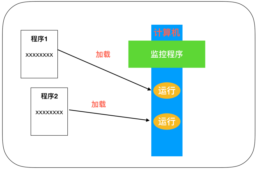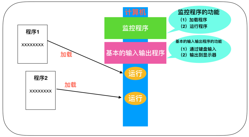 这是一段进行相加的操作,程序启动,在经过编译解析后会由操作系统把硬盘中的程序复制到内存中,示例中的程序是将123和456执行相加操作,并将结果输出到显示器上。由于使用机器语言难以描述,所以这是经过翻译后的结果,实际上每个指令和数据都可能分布在不同的地址上,但为了方便说明,把组成一条指令的内存和数据放在了一个内存地址上。