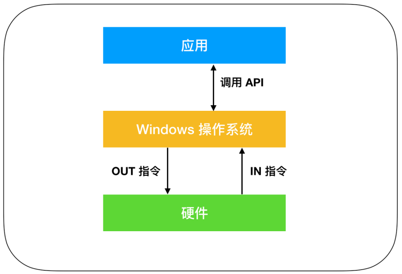 Windows 控制硬件借助的是输入和输出指令。其中具有代表性的两个输入输出指令就是 IN 和 OUT 指令。这些指令也是汇编语言的助记符。