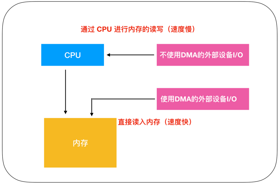 使用 DMA 的外围设备和不使用 DMA 的外部设备: