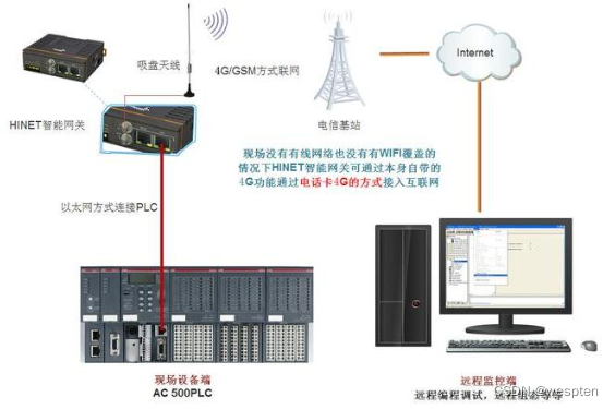 智能网关通过4G方式联网对PLC远程控制: