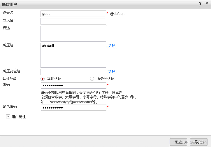 第2步,新建用户用于认证,单击“确定”按钮。
