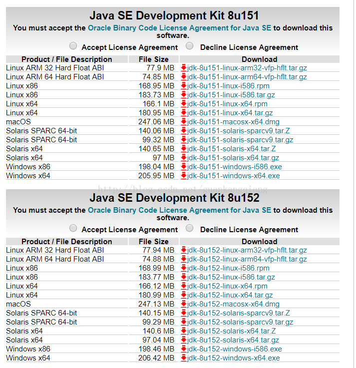 去Oracle官网去下载JDK 地址:http://www.oracle.com/technetwork/java/javase/downloads/jdk8-downloads-2133151.html