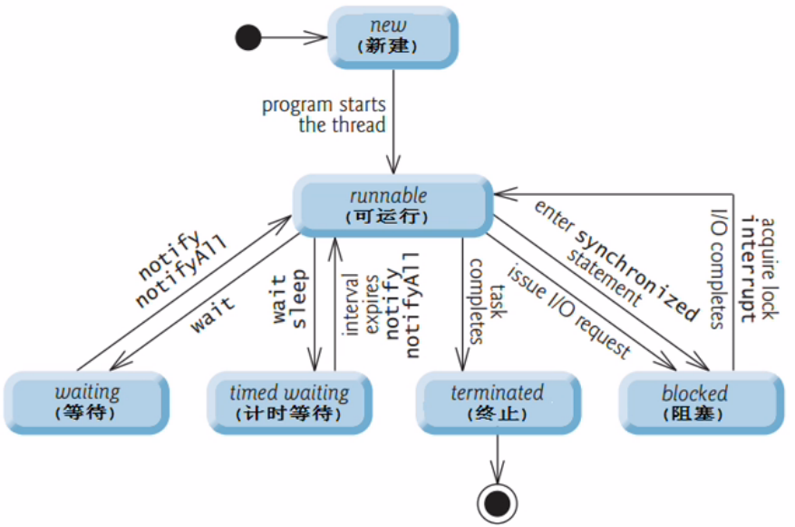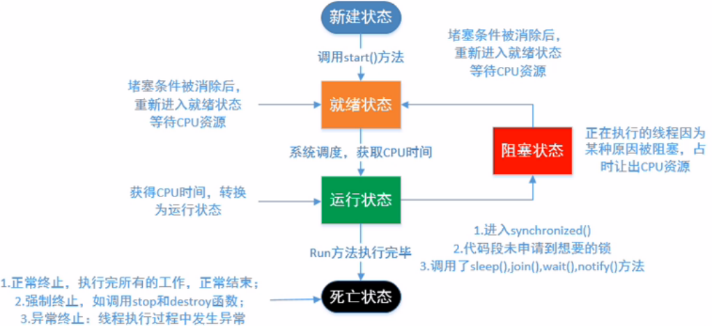 6、终止状态(terminated):通常称为死亡状态,表示线程终止