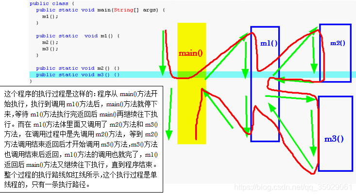 程只是一个静态的概念,机器上的一个.class文件,机器上的一个.exe文件,这个叫做一个进程。程序的执行过程都是这样的:首先把程序的代码放到内存的代码区里面,代码放到代码区后并没有马上开始执行,但这时候说明了一个进程准备开始,进程已经产生了,但还没有开始执行,这就是进程,所以进程其实是一个静态的概念,它本身就不能动。平常所说的进程的执行指的是进程里面主线程开始执行了,也就是main()方法开始执行了。进程是一个静态的概念,在我们机器里面实际上运行的都是线程。