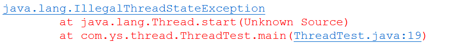 注意:线程对象只能调用一次 start() 方法,否则报错:illegaThreadStateExecptiong