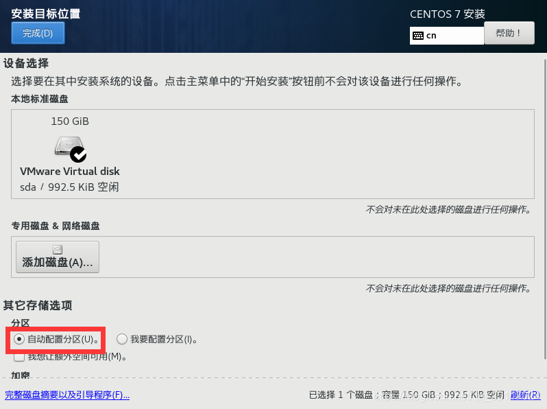 安装位置处选择【自动配置分区】,点击左上角确定按钮。