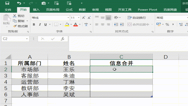 | 所属部门 | 姓名 | 信息合并 |