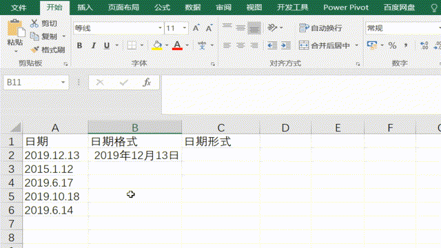 快捷键“ctrl+E”还可以用来修改格式,比如日期。我们常见的日期格式有"2019年3月10日"、"2019-03-10"、"2019/3/10",但是当我们碰到"2019.12.13"这种excel并不认同的格式时,应该怎么办呢?