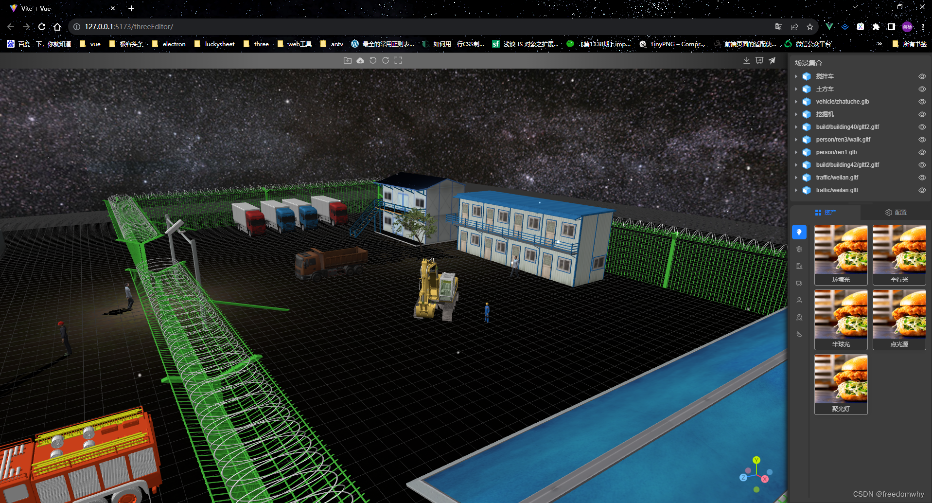 一直在公司负责可视化平台的设计研发工作。公司可视化需求的大量增加,又想少开发写代码。就慢慢衍生出了2款编辑器。可视化编辑器,3D场景编辑器。最近把2款编辑器进行了简单的融合。最终达到了以上示例效果。可视化解析器有vue2,vue3。3d场景解析器vue3版本。基于以上编辑器衍生出了。