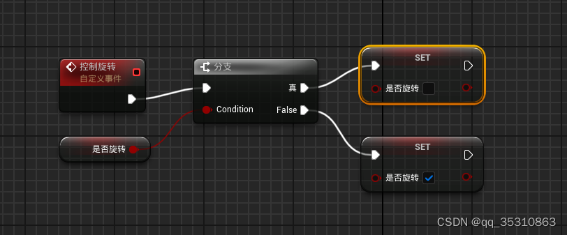 然后我们创建变量,用来控制这个旋转事件,创建分支,用来判断是否旋转
