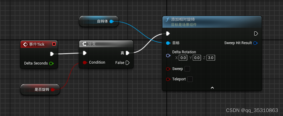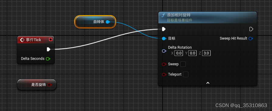 首先是tick事件,然后把物体添加旋转.这样物体就会一直旋转了