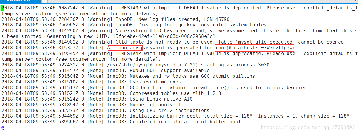 mysql安装完成之后,在/var/log/mysqld.log文件中给root生成了一个临时的默认密码。