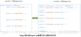 根据MyBatis 的配置规范配置好后,通过SqlSession.getMapper(XXXMapper.class)方法,MyBatis 会根据相应的接口声明的方法信息,通过动态代理机制生成一个Mapper 实例,我们使用Mapper接口的某一个方法时,MyBatis会根据这个方法的方法名和参数类型,确定Statement Id,底层还是通过SqlSession.select("statementId",parameterObject);或者SqlSession.update("statementId",parameterObject); 等等来实现对数据库的操作,MyBatis引用Mapper 接口这种调用方式,纯粹是为了满足面向接口编程的需要。(其实还有一个原因是在于,面向接口的编程,使得用户在接口上可以使用注解来配置SQL语句,这样就可以脱离XML配置文件,实现“0配置”)。