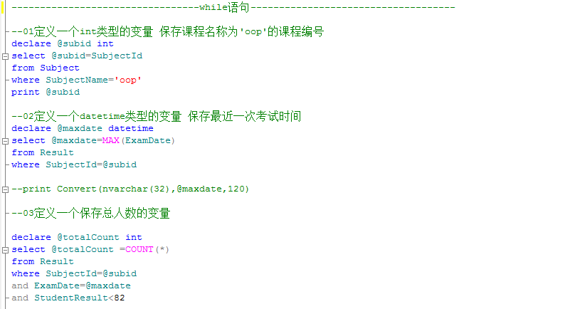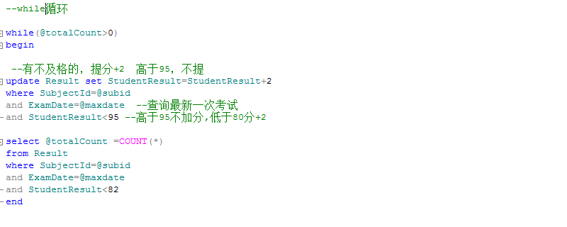 注:在SQL 中,只有while一种循环,没有do-while和for循环